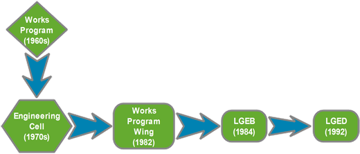 কুমিল্লা মডেলের অন্তর্ভুক্ত পল্লীপূর্ত কর্মসূচি বাস্তবায়ন ছিল মূলতঃ গ্রামীণ অবকাঠামো উন্নয়নের মূল ভিত্তি। পরবর্তীতে সত্তরের দশকে স্থানীয় সরকার, পল্লী উন্নয়ন ও সমবায় মন্ত্রণালয়ের আওতায় এ কর্মসূচি বাস্তবায়নের জন্য একটি সেল গঠন করা হয়, যা ১৯৮২ সালে উন্নয়ন বাজেটের আওতায় ‘ওয়ার্কস প্রোগ্রাম উইং’ এ রুপান্তরিত হয়। ১৯৮৪ সালের অক্টোবরে ওয়ার্কস প্রোগ্রাম উইং রাজস্ব বাজেটের আওতায় স্থানীয় সরকার প্রকৌশল ব্যুরো (এলজিইবি) রূপে পুনর্গঠিত হয়। ১৯৯২ সালের আগস্ট মাসে এলজিইবিকে স্থানীয় সরকার প্রকৌশল অধিদপ্তর (এলজিইডি) হিসেবে উন্নীত করা হয়।